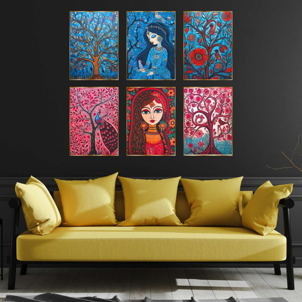 wall paintings, designed to elevate any room with their vibrant traditional charm. Perfect for a variety of settings, these intricate pieces are ideal for wall decor, whether you’re seeking artwork for your living room or bedroom. Our collection includes bold and large wall paintings that create a striking focal point, especially as big wall paintings for the living room. paintings are perfect for home decoration, seamlessly fitting into any space as wall art for living rooms or framed wall paintings for bedrooms. Whether you choose wall paintings with frames for the living room or bedroom, these pieces add an elegant, cohesive touch to your decor. Beyond living areas, these paintings also make beautiful kitchen wall decor and versatile wall hanging options. Enhance your living room wall decor with framed wall art that complements any style. Choose from various formats, including wall paintings golden frame,allowing you to customize your space with ease. Each painting blends traditional and abstract styles, offering both framed wall paintings and wall art decor that fit effortlessly into any room. Explore the beauty of art and bring a touch of culture and sophistication to your home with these exquisite wall paintings for decoration.